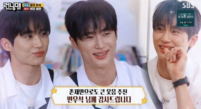 이날 방송에는 앞서 예고된 대로 화제의 드라마 ‘선재 업고 튀어’를 통해 큰 사랑을 받고 있는 배우 변우석이 등장해 눈길을 끌었다. 2년 만에 ‘런닝맨’에 출격한 변우석은 이날 ‘선재’, 그 자체인 교복을 입고 상황극에 도전해 흥미를 더했다. 변우석은 학교를 가야 하는 상황극 도중 여고생의 고백 공격을 받고 “알았어, 나도 좋아해. 그럼 만나자"라고 답하며 보는 이들의 설렘을 유발했다.