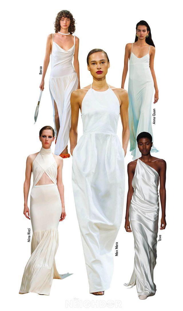 특별한 날을 위한 단 한 벌의 드레스를 고른다면 보디라인을 타고 내려오는 롱앤린 실루엣의 드레스를 선택하겠다. 발등을 덮는 길이와 군더더기 없는 심플한 디자인, 고급스러운 실크 소재가 우아한 자태를 드러낼 테니. 특히 키가 크고 날씬한 체형이라면 강점을 부각하는 데 최고의 선택지가 아닐까. 안나 콴이나 베브자처럼 슬립 드레스로 센슈얼하게 소화하거나, 좁은 어깨가 고민이라면 막스마라나 니나리치처럼 홀터넥으로 어깨를 과감하게 드러내 어깨 라인을 강조해도 좋다.