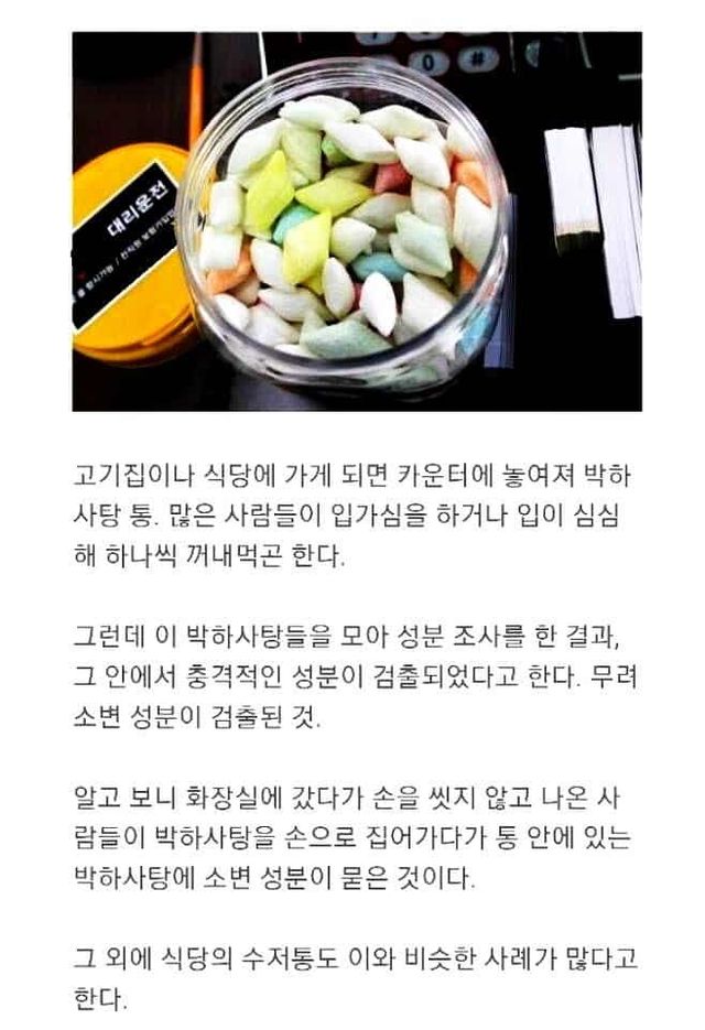 식당에서 통에 담긴 박하사탕 조심해야 하는 이유