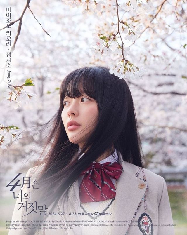 최근 EMK뮤지컬컴퍼니는 뮤지컬 ‘4월은 너의 거짓말’ 캐릭터 포스터를 오픈, 미야조노 카오리 역에 캐스팅된 정지소의 비주얼로 팬들의 이목을 사로잡았다.