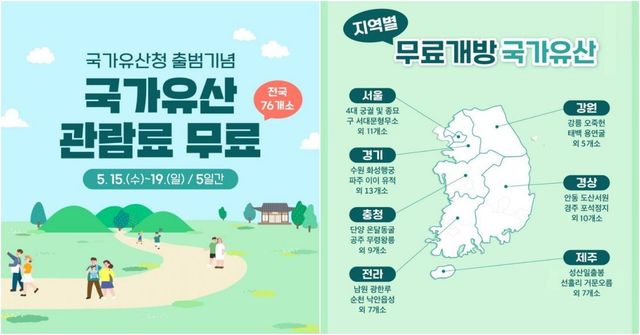 문화재청이 전국 76곳의 국가유산을 무료로 개방한다. / 문화재청