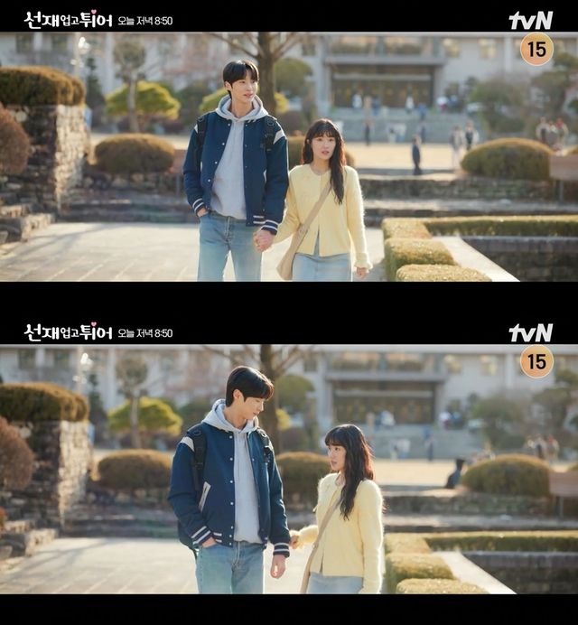 이 가운데 공개된 스틸에는 낮에는 캠퍼스에서, 밤에는 예쁜 벚꽃길에서 둘만의 시간을 보내는 솔선커플의 24시간 데이트 현장이 담겼다. 류선재는 공강에도 불구하고 여자친구 임솔과 한시도 떨어지고 싶지 않아 함께 수업을 들을 만큼 변함없는 애정을 보인다. 이와 함께 두 사람은 손을 꼭 잡고 다정히 캠퍼스를 거닐고 있다. 러블리한 20살 솔선커플의 연애가 보는 이의 심장을 두근거리게 한다.