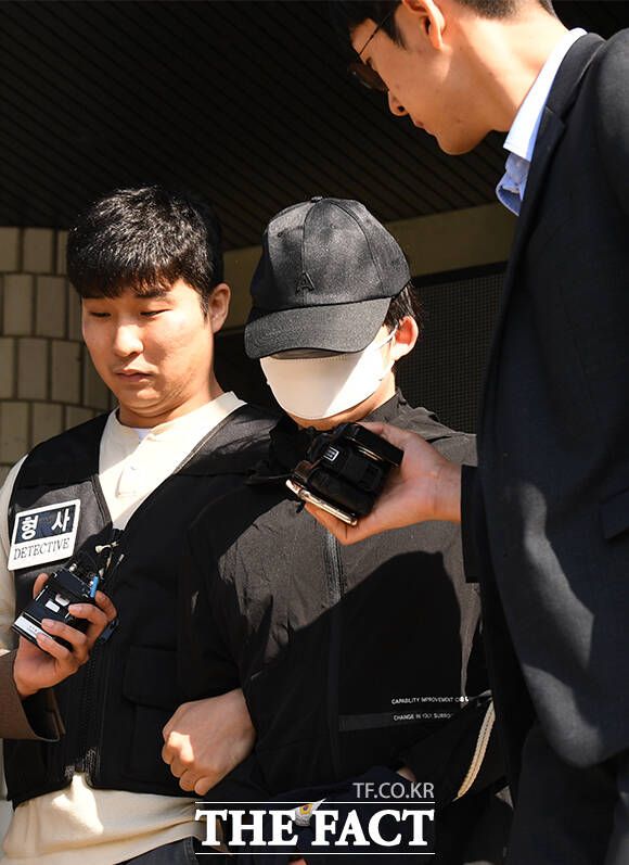 [더팩트ㅣ임영무 기자] 여자친구를 흉기로 살해한 의대생 최모 씨가 14일 오전 서울 서초경찰서에서 서울중앙지검으로 송치되고 있다.