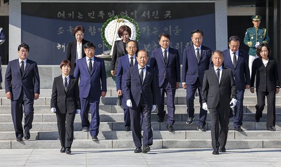 황 위원장은 이후 취재진과 만나 "마음이 숙연해지고 선열들의 발자취를 과연 우리가 따라갈 수 있을까 하는 스스로의 반성이 일어난다"며 "애국 충정을 꼭 이어받아야겠다는 다짐을 다시 한번 한다"고 말했다.