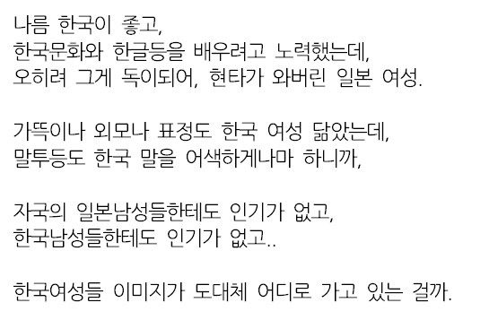 한국여자 닮아서 인기가 없어 슬프다는 니폰여성
