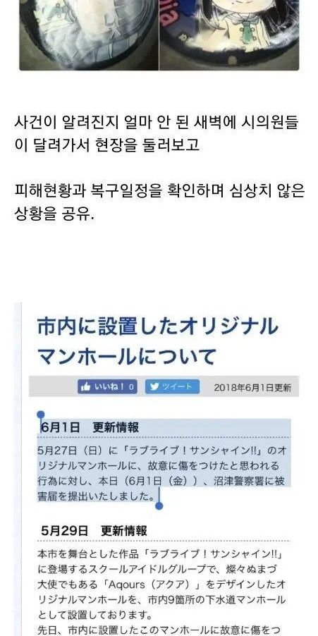 어느 일본도시의 3억 3천만원짜리 캐릭터 ‘맨홀’ 테러사건 …