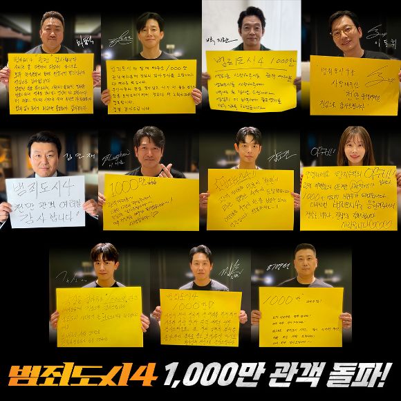 2019년 '극한직업' 이후 최단 기간 한국영화 천만 돌파 신기록을 세운 영화 '범죄도시4'는 지난 6년간의 흥행 신기록을 모두 싹 갈아치우며, 한국영화의 새로운 흥행 신기원을 세웠다. 더불어 '범죄도시4'는 한국 영화 역사상 역대 33번째 천만 영화, 역대 한국영화 중 24번째로 천만 관객을 돌파한 작품이 되었다.