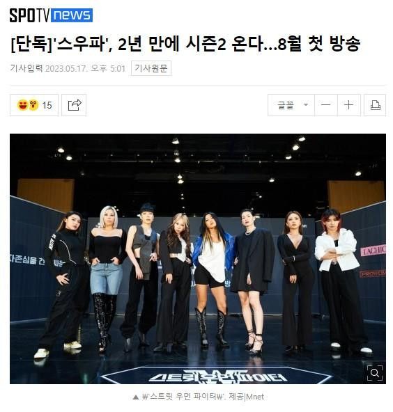 17일 스포티비뉴스 취재에 따르면 엠넷 스트릿 우먼 파이터 시즌2(이하 스우파2)는 8월 첫 방송된다.