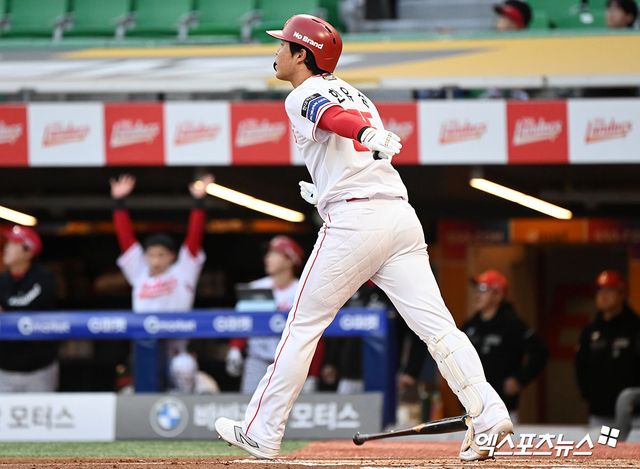 홈런 상황을 복기한 한유섬은 "홈런을 친 타석에선 빠른 타이밍에 승부를 보려고 했고, 생각하고 있던 노림수에 딱 맞아떨어져서 좋은 타구가 나왔다"고 돌아봤다.