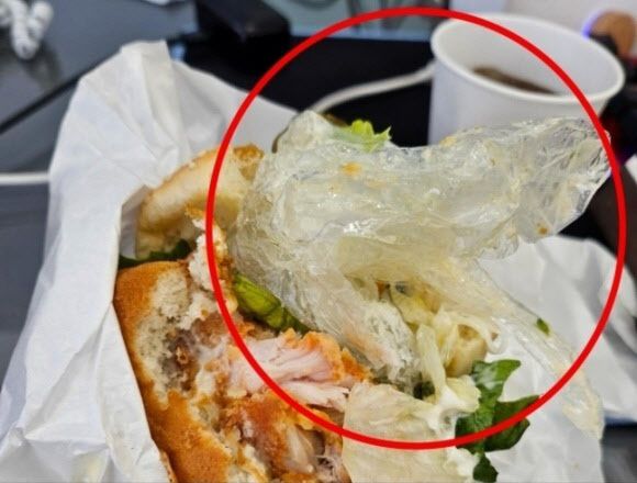 15일 연합뉴스에 따르면 경기도 성남에 사는 A씨는 지난달 19일 한 햄버거 매장에서 음식을 배달 주문했다. 햄버거를 절반쯤 먹은 A씨는 치킨 패티와 야채 사이에 음식을 조리할 때 착용하는 비닐 위생 장갑 한쪽이 통째로 들어간 것을 발견했다.