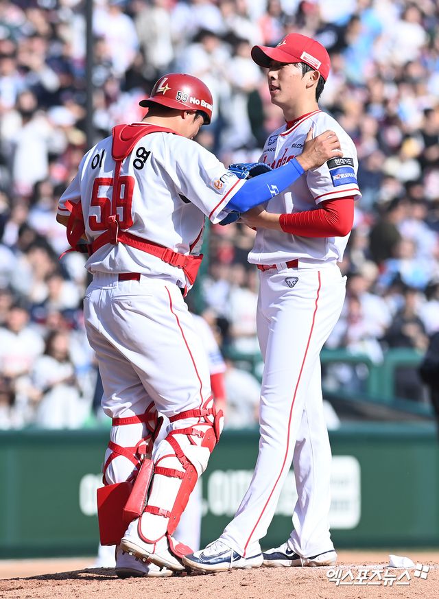 아찔했던 '4회초 11구 연속 볼'을 돌아보기도 한 오원석은 "2사 1·2루에서 (볼카운트) 3볼이 되니까 '어떡하지'라는 생각이 먼저 들었다. 여기서 볼넷을 주고 한 방을 맞으면 또 이전 경기와 같은 상황이 될 수 있다고 생각해서 그냥 가운데만 보고 세게 던지자고 생각했다"고 돌아봤다.
