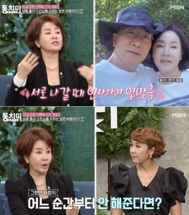 선우은숙은 "제가 최근 새롭게 부부 생활을 시작했잖냐. 애들 없이 부부가 둘이서만 살다 보니 스킨십을 자주 하게 된다."며 "우리 부부는 외출할 때 서로 입맞춤하고 헤어질 때도 서로 꼭 안아주는 게 일상이다."라고 말했다.