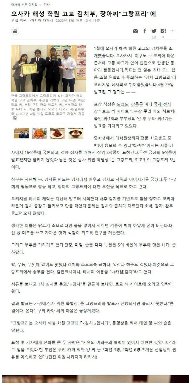 일본 오사카 고등학교 김치 담그는 동아리 근황 …