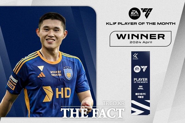[더팩트 | 박순규 기자] 울산 HD FC 이동경(26)이 3월에 이어 4월에도 K리그 공식 비디오게임 파트너 일렉트로닉아츠(Electronic Arts, 이하 'EA')가 후원하는 4월 'EA SPORTS K리그 이달의 선수상(EA SPORTS K LEAGUE Player Of The Month)' 영예를 차지했다.