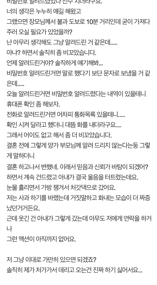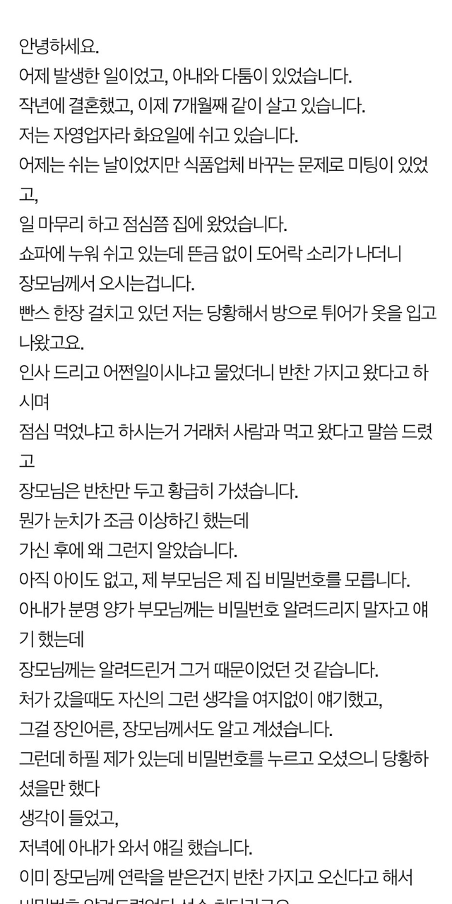2. 남편혼자 집에있는데 장모가 비번 누르고 들어옴