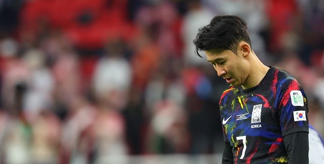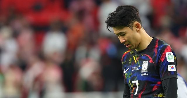 지난 2월 6일(현지 시각) 카타르 알라이얀 아흐마드 빈 알리 스타디움 열린 2023 아시아축구연맹(AFC) 아시안컵 4강전에서 한국과 요르단 경기가 끝난 뒤 손흥민이 고개를 숙인 채 경기장을 나서고 있다. / 연합뉴스