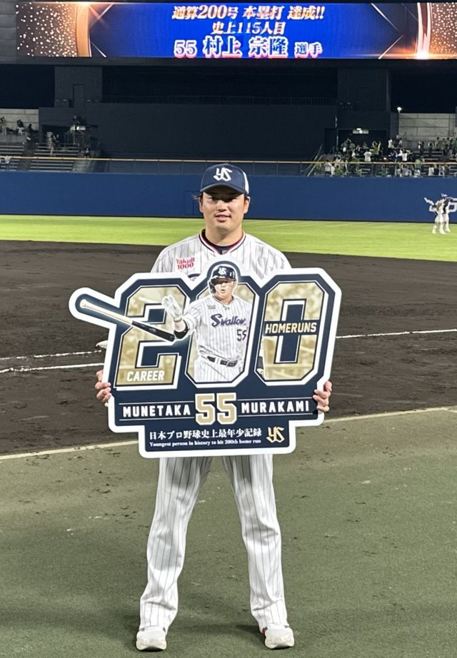 일본프로야구에서 56개의 홈런(2022년)을 때려낸 거포 무라카미 무네타카가 일본 최연소 200홈런 대기록을 달성했다.