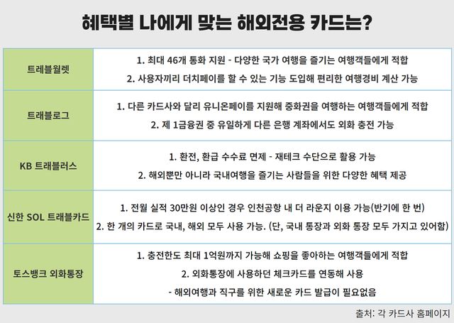 쇼핑·국내 여행 등 각 해외 전용 카드 혜택 별로 나에게 맞는 카드는?