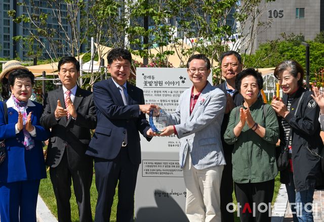 이날 감사패는 ‘문래동 꽃밭정원’ 조성에 대한 감사의 의미를 담아 문래동 주민자치위원회가 주민을 대표해 최호권 영등포구청장에게 전달했다. 문래동 꽃밭정원은 지난 20여 년 동안 가림막으로 막혀있던 문래동 공공부지를 활용한 곳으로 현재 사계절 아름다운 정원으로 주민들이 여유와 힐링을 느낄 수 있는 공간으로 각광받고 있다. /정재훈 기자