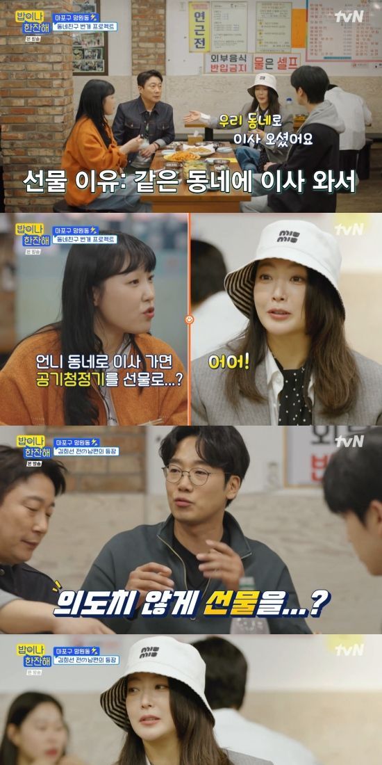 더 나아가 이수근은 "집에 어느 날 선물이 도착한 거다. 공기청정기 좋은 거 있지 않냐. 그것도 보내주시고"라며 덧붙였고, 김희선은 "우리 동네로 이사 왔다"라며 공기청정기를 선물한 이유를 고백했다.