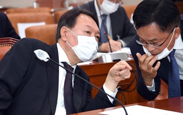 윤석열 당시 검찰총장과 대화나누는 조남관 당시 대검찰청 차장검사 / 뉴스1