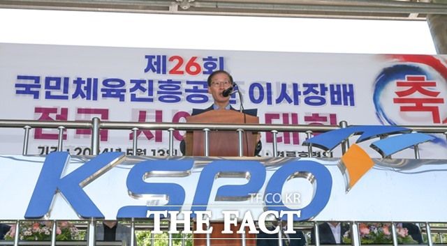 조현재 이사장이 제26회 국민체육진흥공단 이사장배 전국 사이클대회 개회식에서 개회사를 하고 있다./경륜경정총괄본부