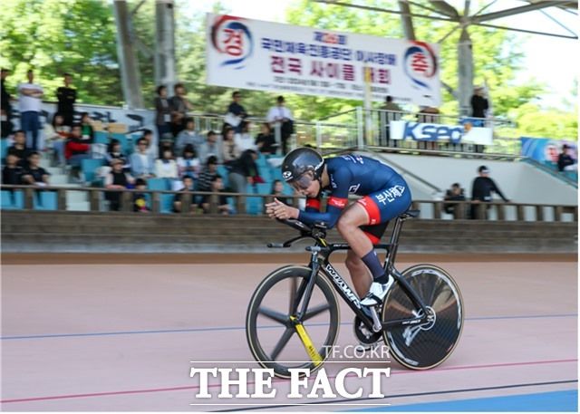 제26회 국민체육진흥공단 이사장배 전국 사이클대회에 출전한 선수가 힘찬게 페달을 밟으며 경주를 펼치고 있다./경륜경정총괄본부
