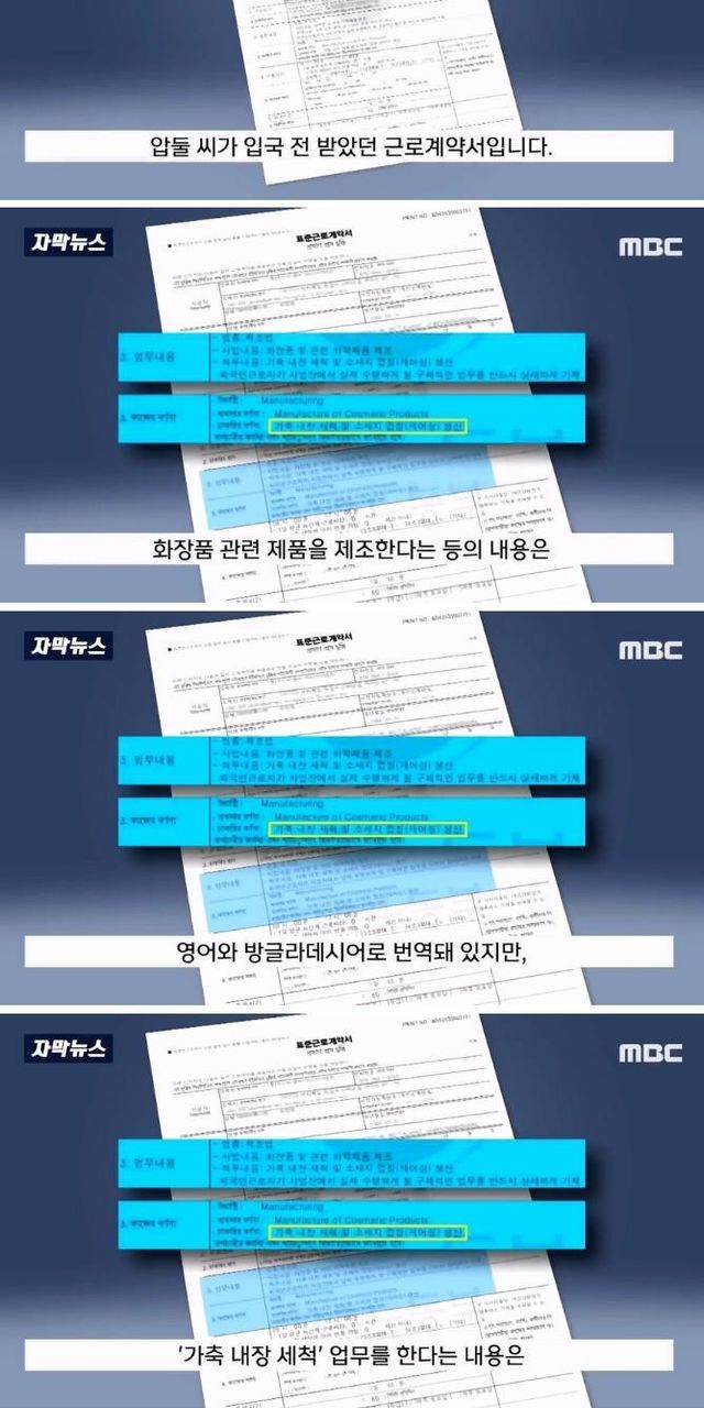 이런일 할줄 몰랐다고 하는데 보니까 근로계약서에 써있긴 한데 이부분만 한국어로 써있음