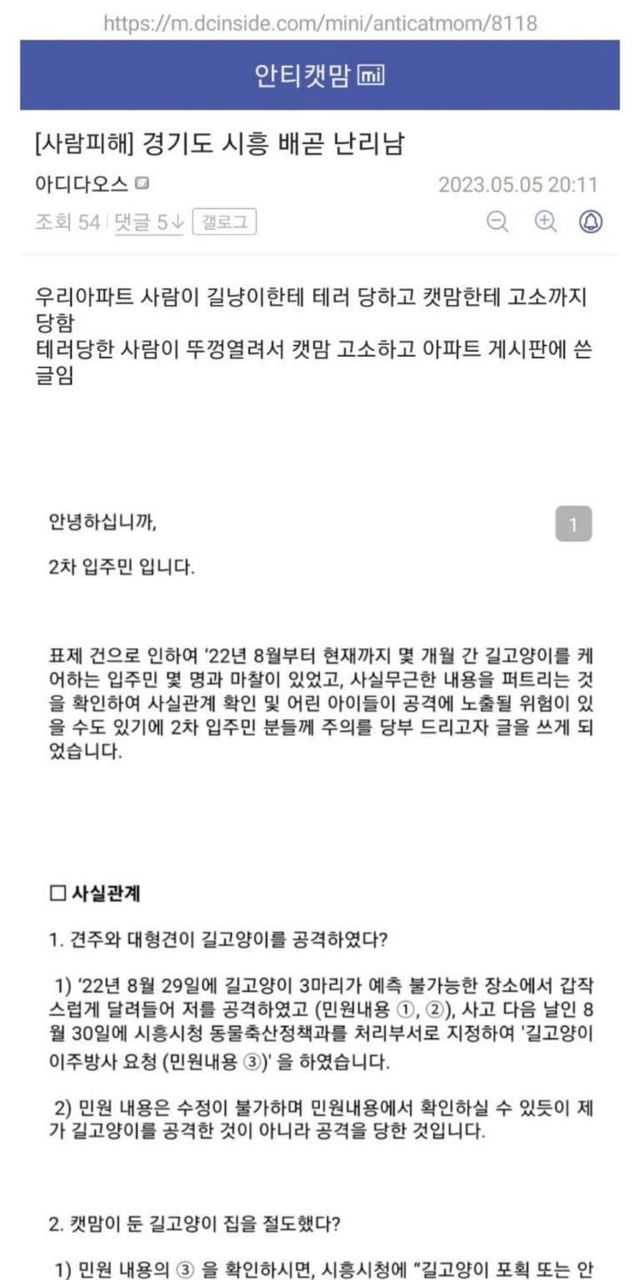 시흥 배곧 신도시 길고양이가 사람 공격해서 캣맘 고소 당함