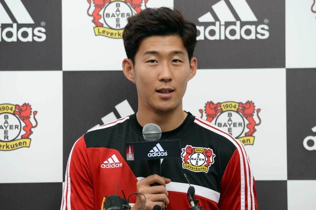 레버쿠젠 시절 손흥민 모습. 독일 프로축구 바이엘 레버쿠젠에서 활약하고 있는 손흥민이 서울 용산구 한강로 용산아이파크몰 풋살경기장에서 유소년 축구 클리닉을 진행하기 앞서 기자들의 질문에 답하고 있다. 이번 행사는 손흥민, 류승우, 슈테판 키슬링, 시몬 롤페스 등 FC서울과 친선 경기를 위해 한국을 찾은 바이엘 레버쿠젠 소속 선수들이 국내 어린이들에게 독일 명문 구단의 문화와 기술을 전수해주는 기회로 마련됐다. 2014.7.31/뉴스1