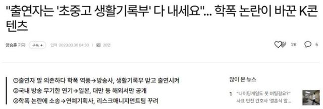 아이돌같은 경우 학폭문제떔에 데뷔하지 논란 터진적이있어서