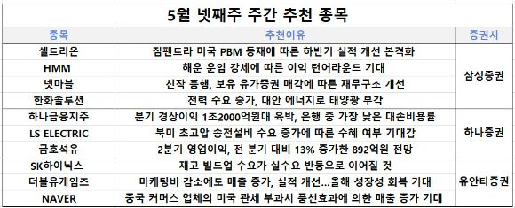 유안타증권은 SK하이닉스, 더블유게이즈, NAVER를 제시했다.