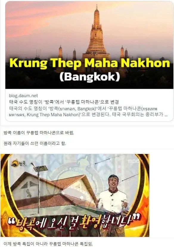 저 뜻은 “신들의 수도, 위대한 도시, 불멸자(신)이자 에머랄드 부처, 위대한 인드라 신의 아유타야(난공불락), 아홉 개의 보석을 지닌 광명의 세계, 왕의 위세로 가득찬 행복의 도시, 위대한 장소, 환생한 신이 다스리는 하늘 위의 땅의 집을 닮은 왕궁으로, 제석천의 허락에 비슈바카르만(विश्वकर्मा, 건축의 신)이 만든 아바타(화신)가 사는 비마나(하늘을 나는 수레)”