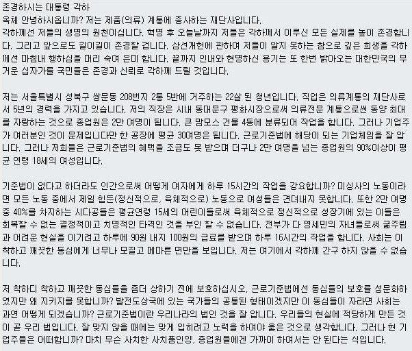 1969년 12월 19일 전태일이 서울시 근로감독관에게 보낸, 노동자 처우 개선을 요구하는 편지