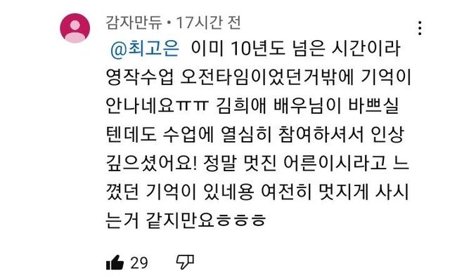 요즘은 EBS 강의 듣는중이라고 밝힘 비싼거 굳이 들을 필요없다고 항상 가방속에 영어교재 들고다니면서 틈틈이 공부 한다고 함