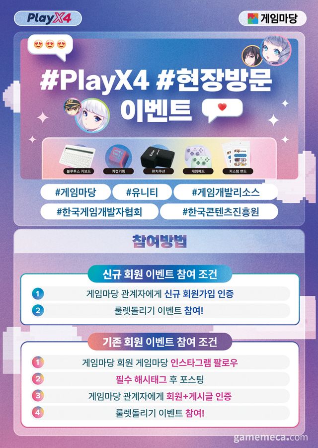 한국게임개발자협회는 5월 23일부터 26일까지 플레이엑스포에서 게임 리소스 공유 플랫폼 '게임마당' 홍보부스를 운영한다.