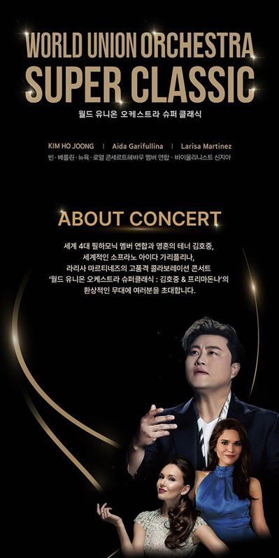 이번 콘서트는 세계 4대 오케스트라로 불리는 오스트리아의 빈 필과 독일의 베를린 필, 미국의 뉴욕 필, 네덜란드의 로열 콘세르트헤바우 오케스트라(RCO) 현역 단원들이 연합해 하나의 팀으로 공연을 펼친다. 오는 23일에는 김호중이 세계 3대 소프라노로 알려진 아이다 가리풀리나와 공연을, 24일 공연에서는 미국의 유명 소프라노인 라리사 마르티네즈와 컬래버 무대를 펼칠 예정이다.