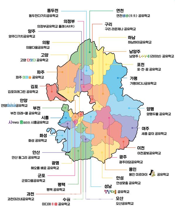 경기도교육청은 경기공유학교의 안정적 운영을 위해 지역 공공기관과 학교 유휴공간, 지자체 기관, 대학 등 학생생활권 중심의 거점활동공간 62개소를 발굴했으며 올해 최종 100곳을 발굴할 계획이다.