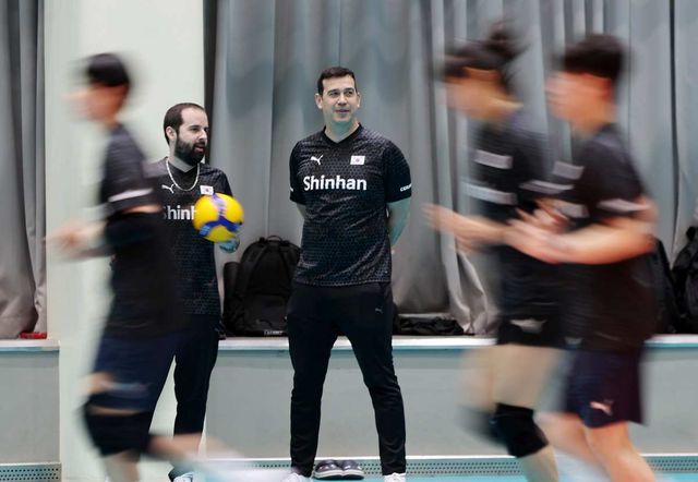 페르난도 모랄레스 여자배구 국가대표팀 감독이 지난 1일 오후 서울 서대문구 중앙여자고등학교 체육관에서 열린 공개 훈련에서 선수들을 지켜보고 있다. / 뉴스1