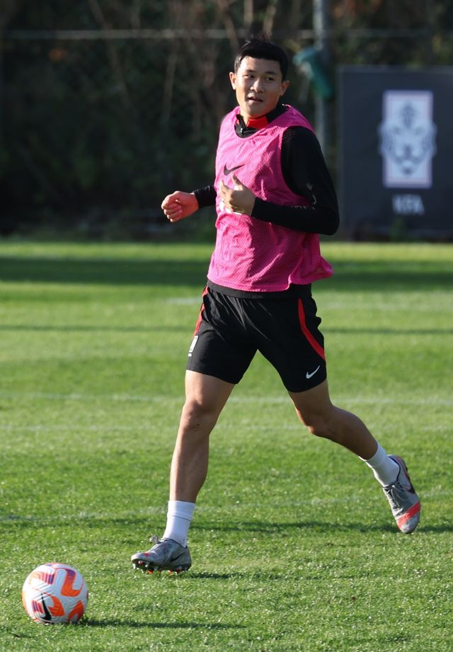 대한민국 축구대표팀 김민재가 2023년 10월 10일 오후 경기도 파주 국가대표 트레이닝센터(NFC)에서 평가전 대비 공개 훈련을 하고 있다. / 뉴스1