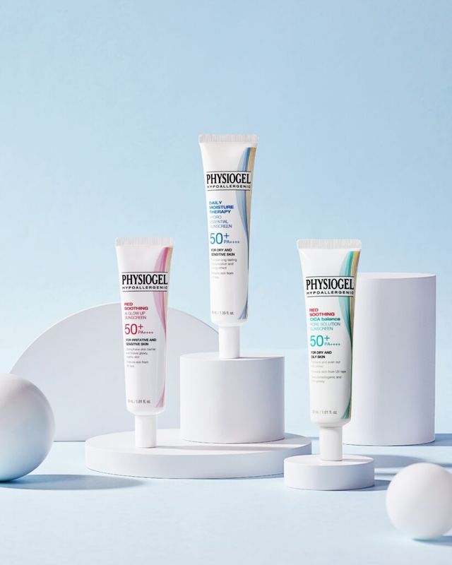 피지오겔 피지오겔 DMT 하이드로 에센셜 썬스크린 40ml, 3만 5천원 / 피지오겔 레드 수딩 AI 글로우 업 썬스크린 30ml, 3만 5천원 / 피지오겔 시카밸런스 포어 솔루션 썬스크린 30ml, 3만 5천원
