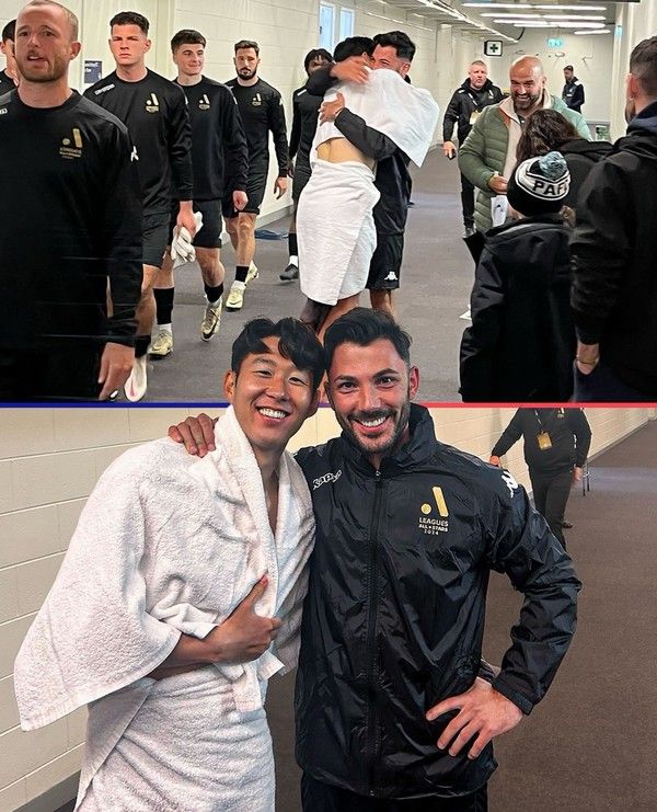 22일(한국시간) 호주 A리그는 공식 소셜미디어(SNS)를 통해 손흥민과 아슬란이 포옹하는 사진과 함께 “토트넘홋스퍼의 오픈 트레이닝 이후 아름다운 순간이 포착됐다”는 문구를 게재했다. 사진 속 손흥민은 훈련 이후 목욕을 하고 곧바로 소식을 들은 듯 수건만 걸친 상태였다. 다른 사진에서는 신발도 슬리퍼인 것으로 확인됐다.