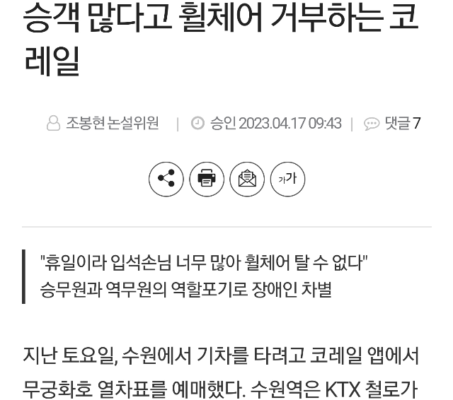 휠체어 타는 장애인은 주말에 기차 예약하면복불복인건가…