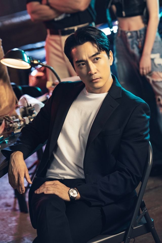 24일 소속사 킹콩 by 스타쉽 측은 tvN 새 월화드라마 ‘플레이어2: 꾼들의 전쟁’(극본 박상문·최슬기, 연출 소재현)에서 천재 사기꾼 ‘강하리’ 역으로 출연하는 송승헌의 포스터 촬영 현장 비하인드 스틸을 여러 장 공개했다.