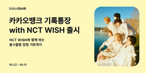 23일 카카오뱅크에 따르면 '기록통장 with NCT WISH'의 기부금 목표 금액은 출시 하루 만에 1억원을 달성했다. 기록통장은 카카오뱅크가 지난해 4월 출시한 수시입출금 예금이다. 이번 '기록통장 with NCT WISH'은 6월 21일까지 판매한다.