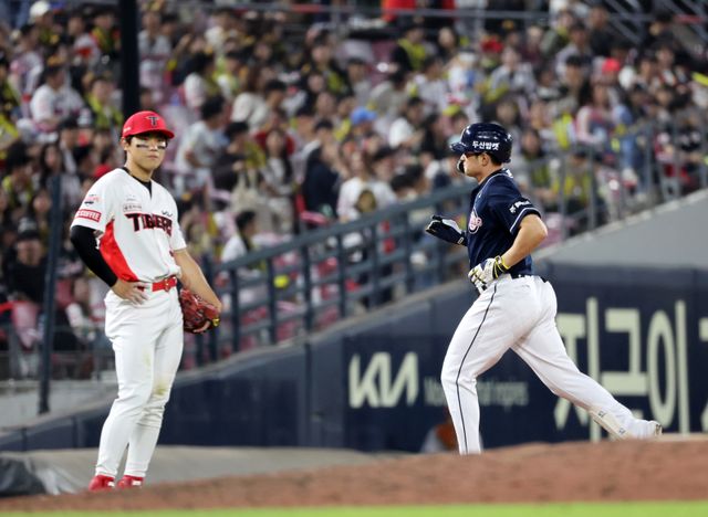KIA는 24일 광주 두산 베어스전을 5-7로 패했다. 0-3으로 뒤진 8회 말 이우성의 스리런 홈런 포함 대거 5득점하며 역전했지만 9회 초 4실점하며 무릎 꿇었다. 이날 경기 패배로 4연패 늪에 빠진 KIA(29승 1무 20패)는 2위 두산(30승 2무 21패)과의 승차가 없어졌다. 승률에서만 겨우 0.004 앞선다. 25일 경기에 패하면 지난달 9일부터 지켜본 선두 자리를 내려놓게 된다.