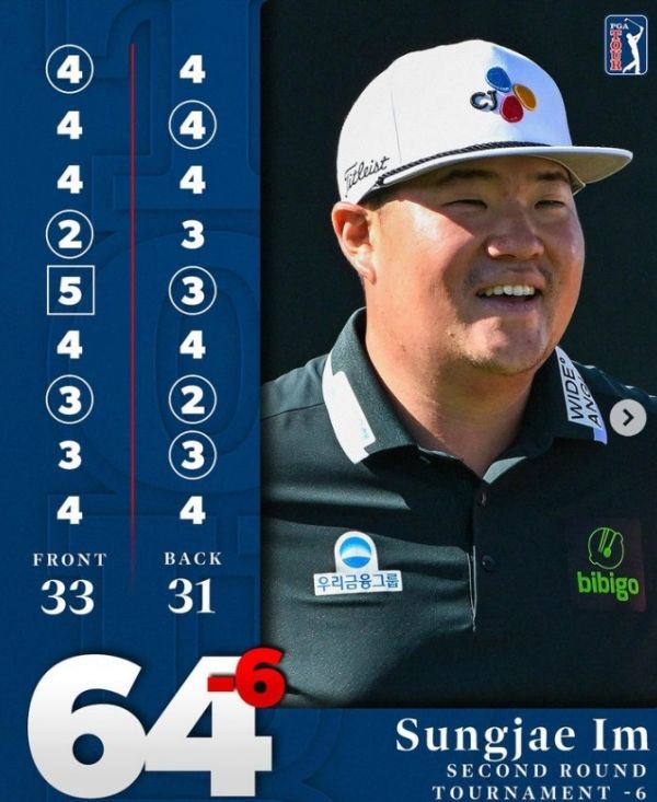 임성재는 이날 버디 7개, 보기 1개로 6타룰 몰아쳐 합계 6언더파 134타를 쳐 키건 브래들리(미국) 등과 전날 공동 46위에서 공동 3위에 올랐다. 마지막 퍼트를 남긴 데이비스 라일리(미국)와는 4타 차다.