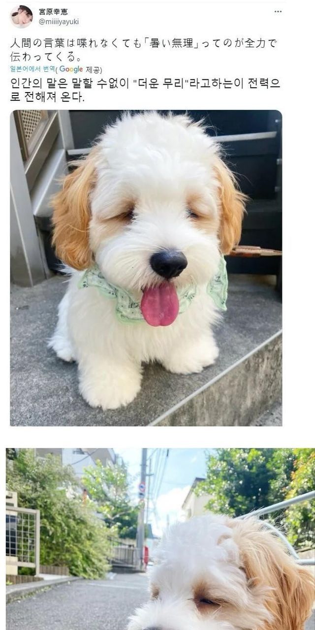 온 몸으로 덥다는 걸 표현하는 강아지 …