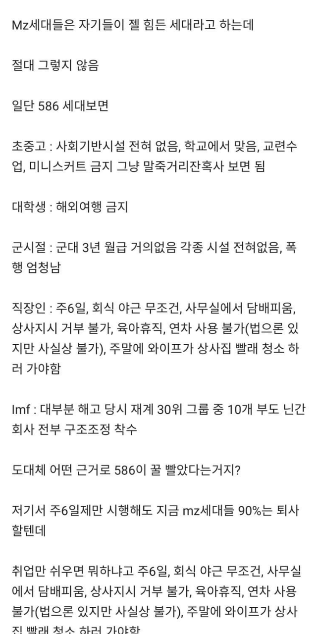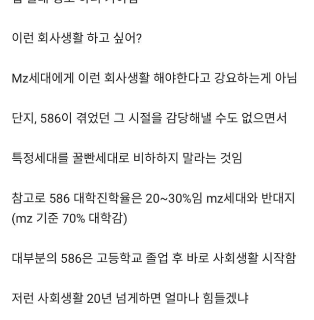 대부분의 우리 부모님 세대는대학 문턱도 못밟았으니까 586도 아님