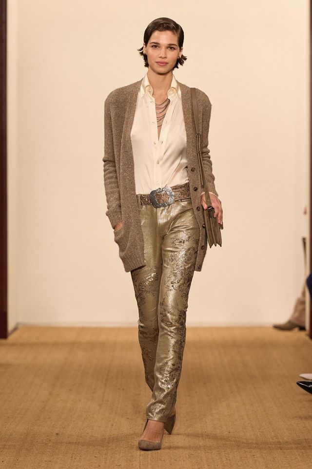 미스터 로렌의 말처럼 뉴트럴한 컬러 팔레트와 메탈릭 디테일이 조화를 이룬 이번 컬렉션은 당당하면서도 우아한 여성의 스타일을 표방하고 있다. 테일러드 수트, 사선 커팅 가운 등 클래식 아이템은 비즈와 트위드, 패치워크 등 장식과 액세서리로 화려함을 더했다. 벨트, 모자, 신발, 타이의 웨스턴 디테일은 존재만으로 랄프 로렌 정체성을 드러내기에 충분했다.